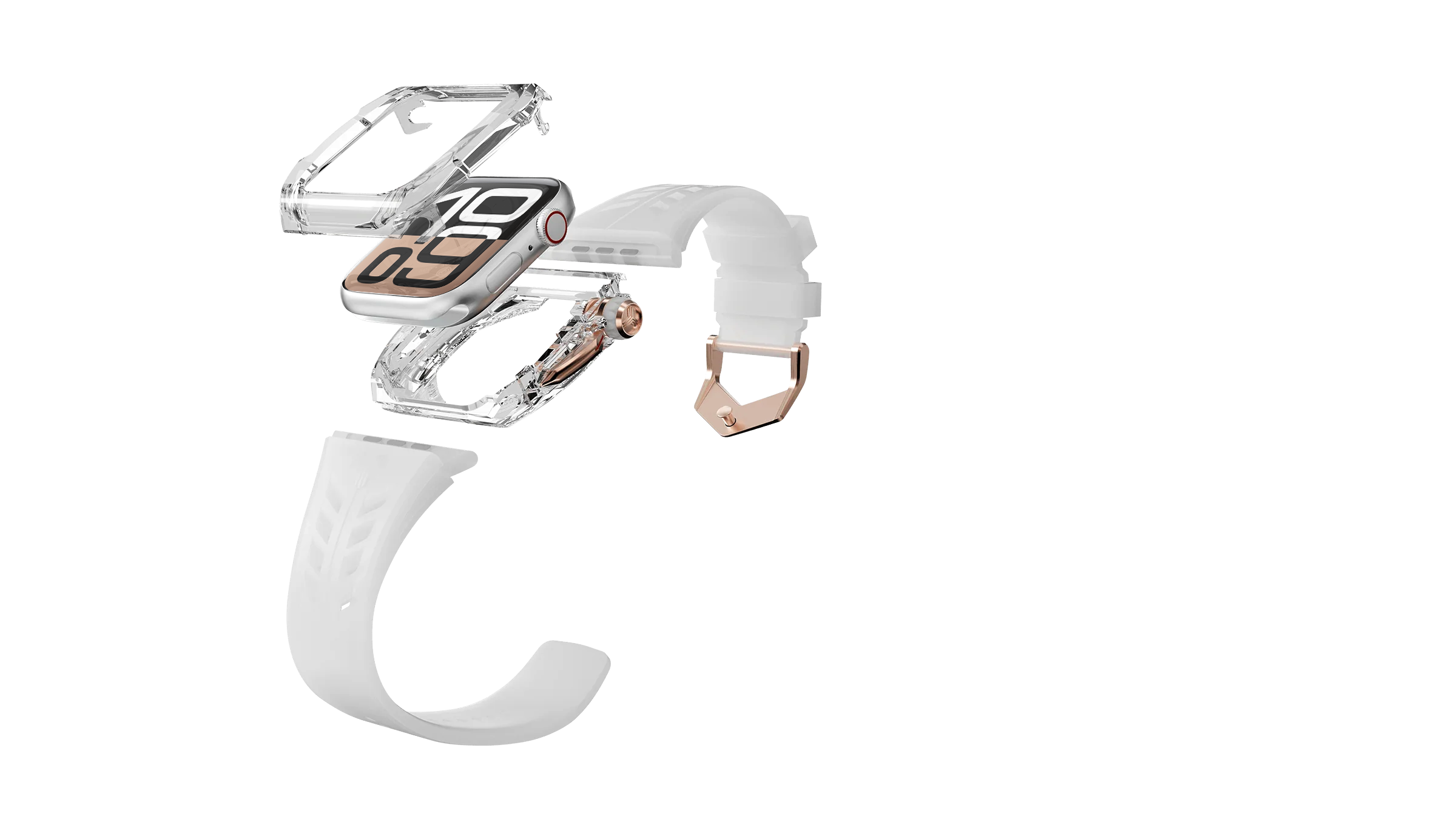 ケースにシームレスにフィットするよう設計された、シリコン製のラバーストラップ。Apple Watch本体の機能を最大限に利用したスピーディーで安全な装着方法で、スタイルに合わせて容易に付け替えることができます。