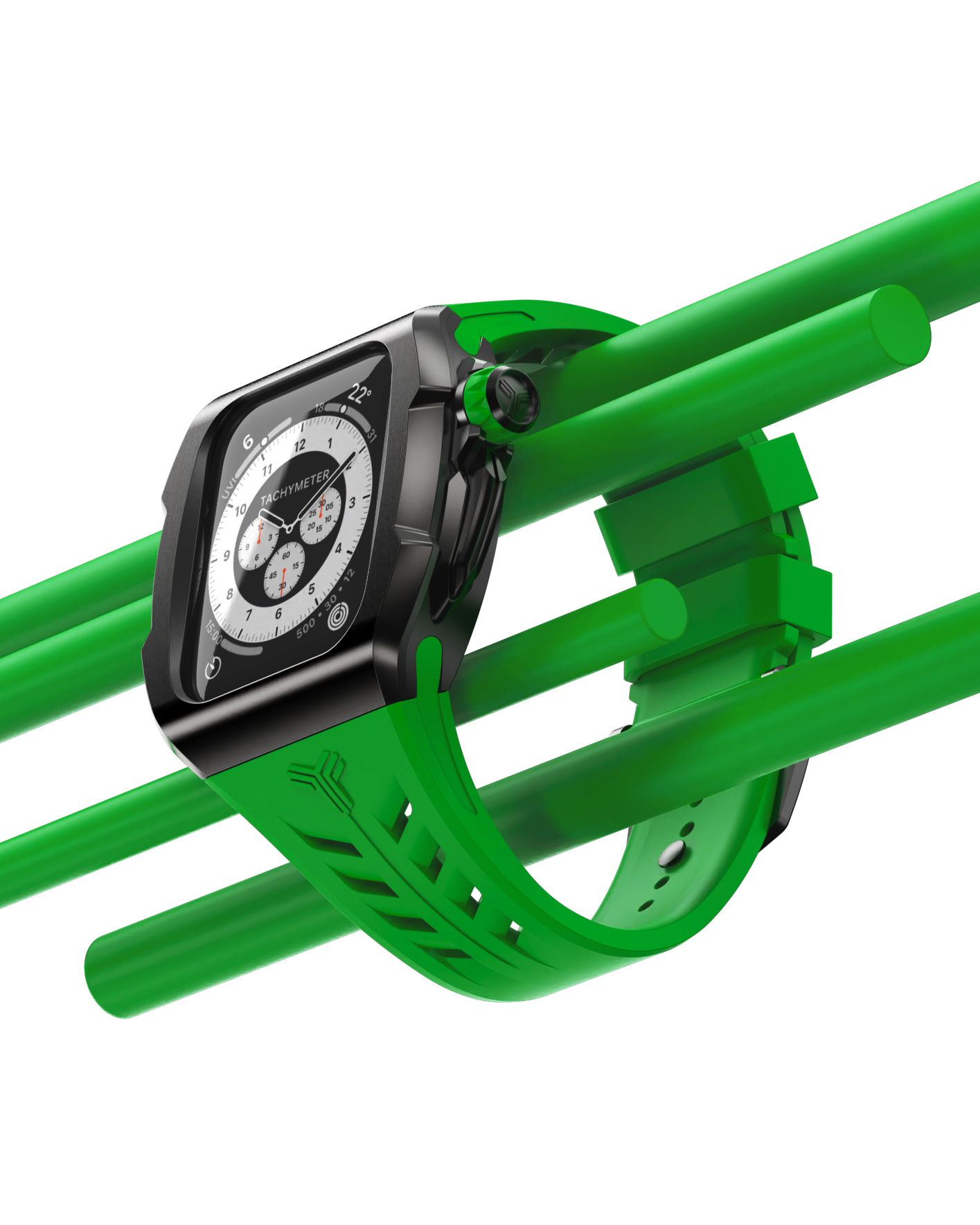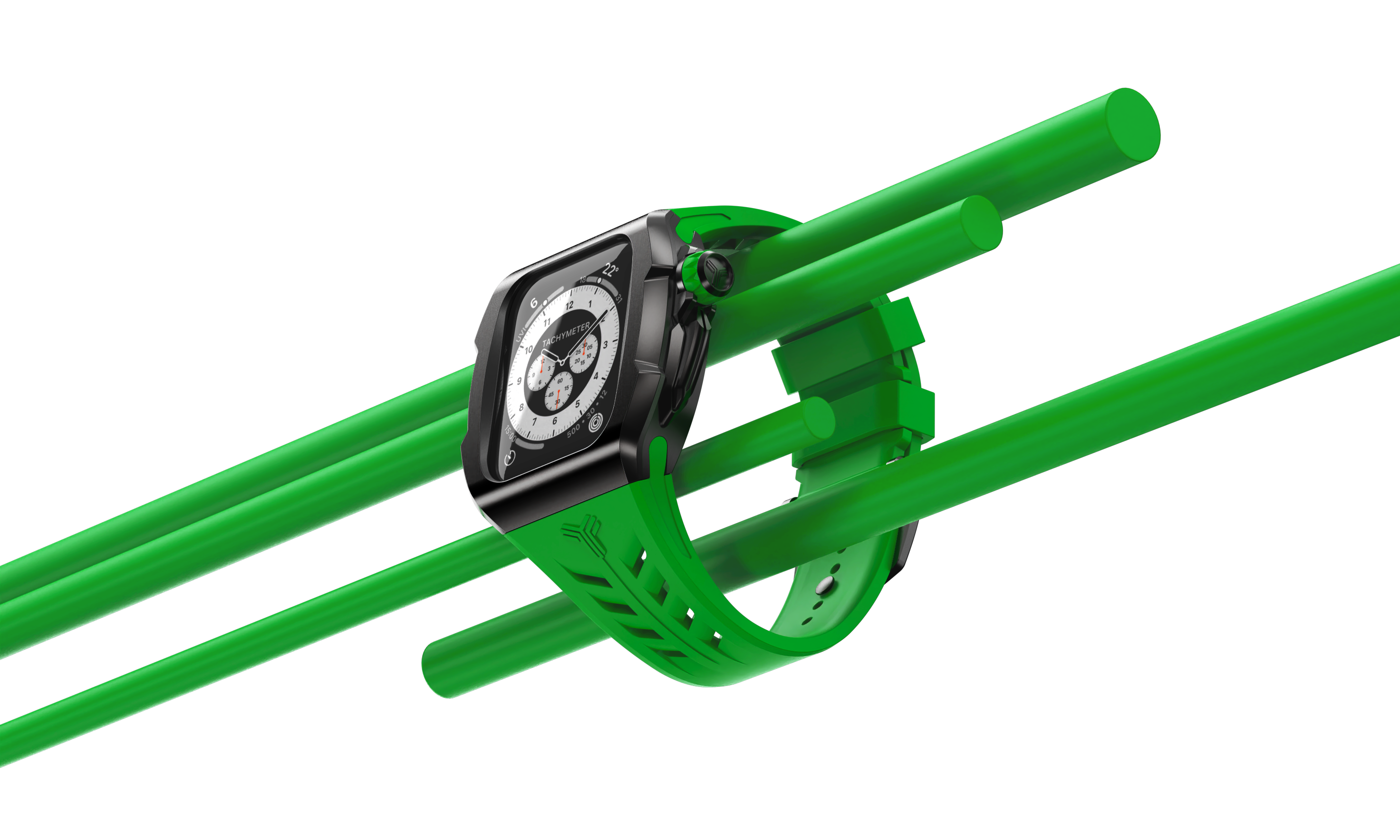 ケースにシームレスにフィットするよう設計された、シリコン製のラバーストラップ。Apple Watch本体の機能を最大限に利用したスピーディーで安全な装着方法で、スタイルに合わせて容易に付け替えることができます。