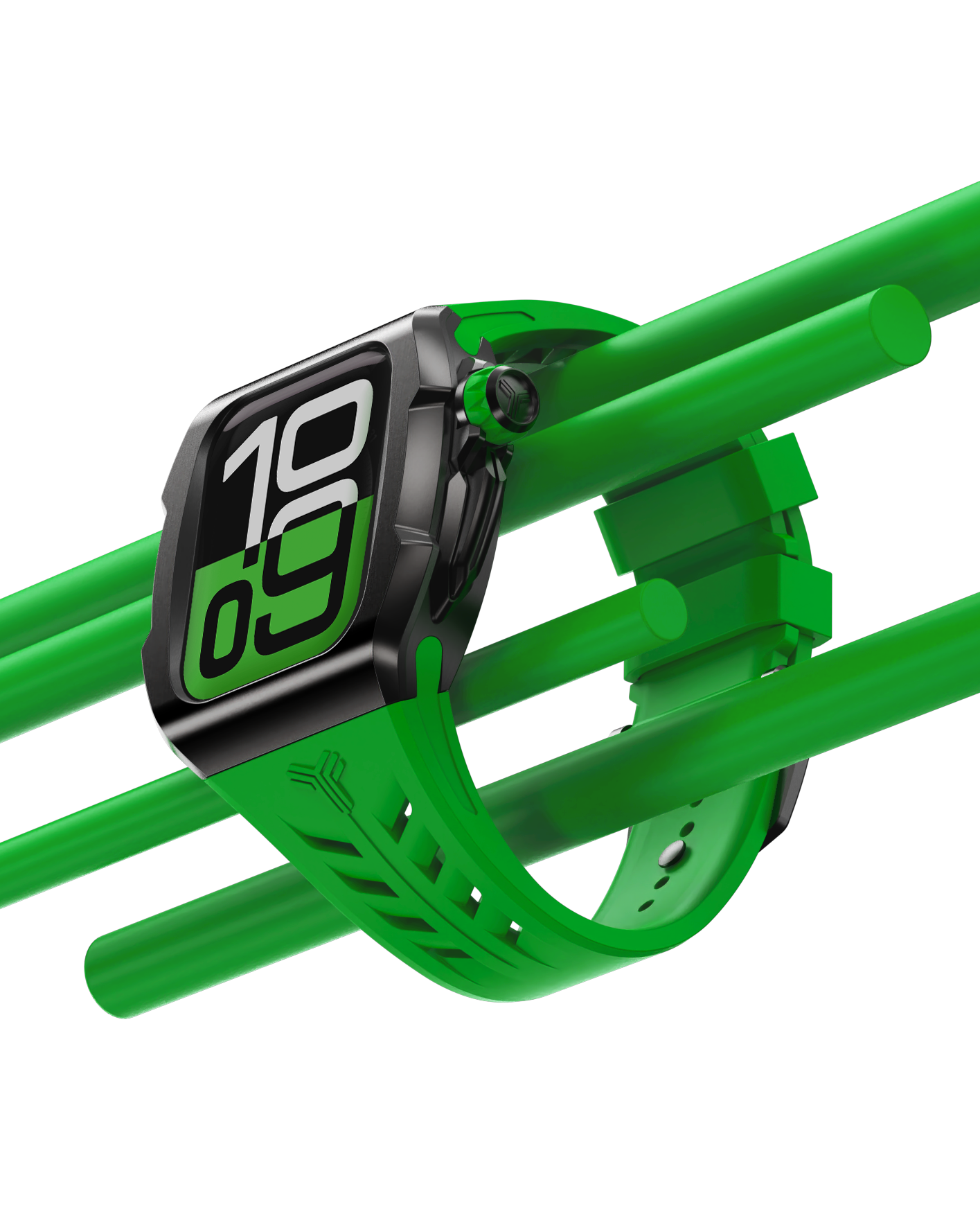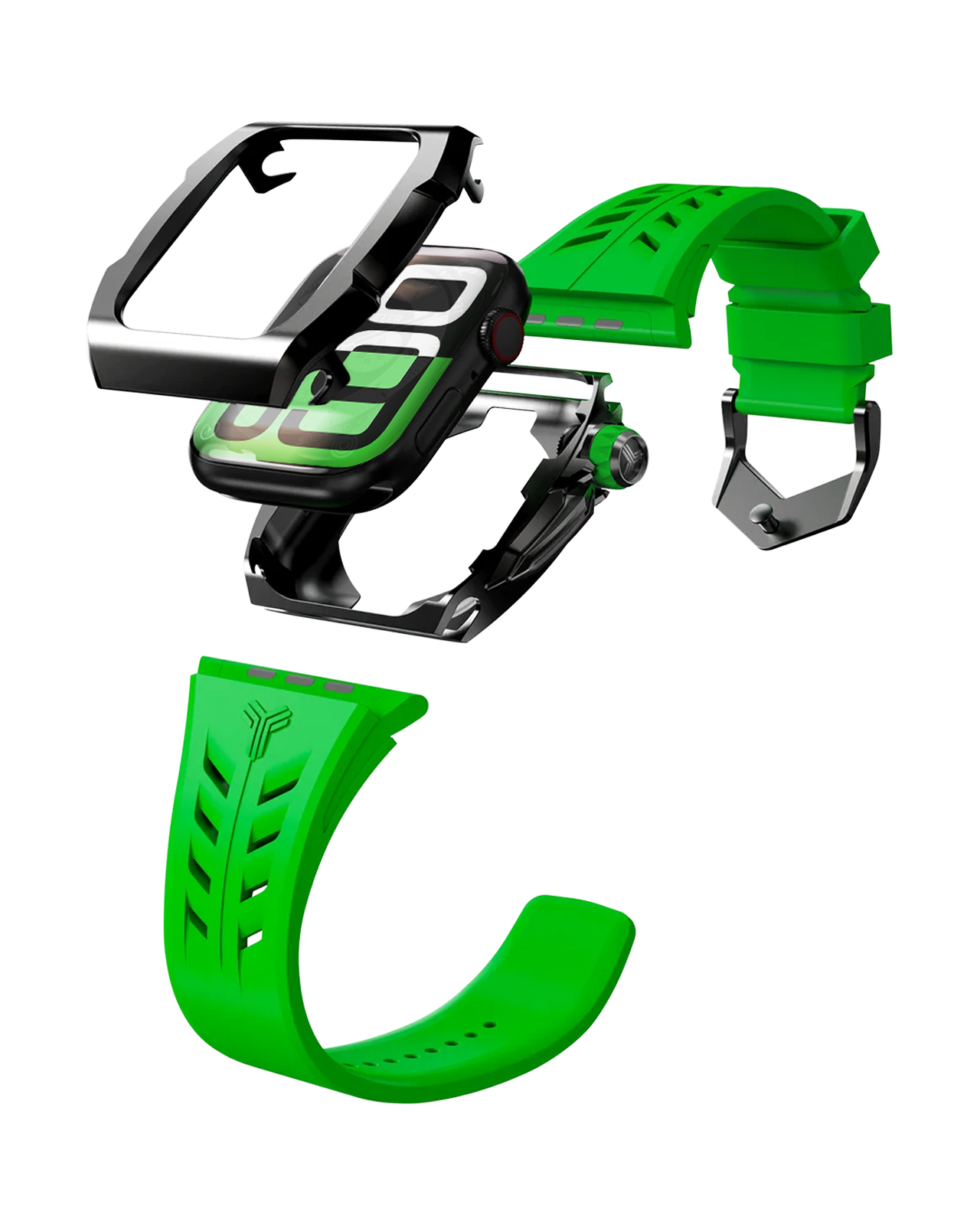 ケースにシームレスにフィットするよう設計された、シリコン製のラバーストラップ。Apple Watch本体の機能を最大限に利用したスピーディーで安全な装着方法で、スタイルに合わせて容易に付け替えることができます。