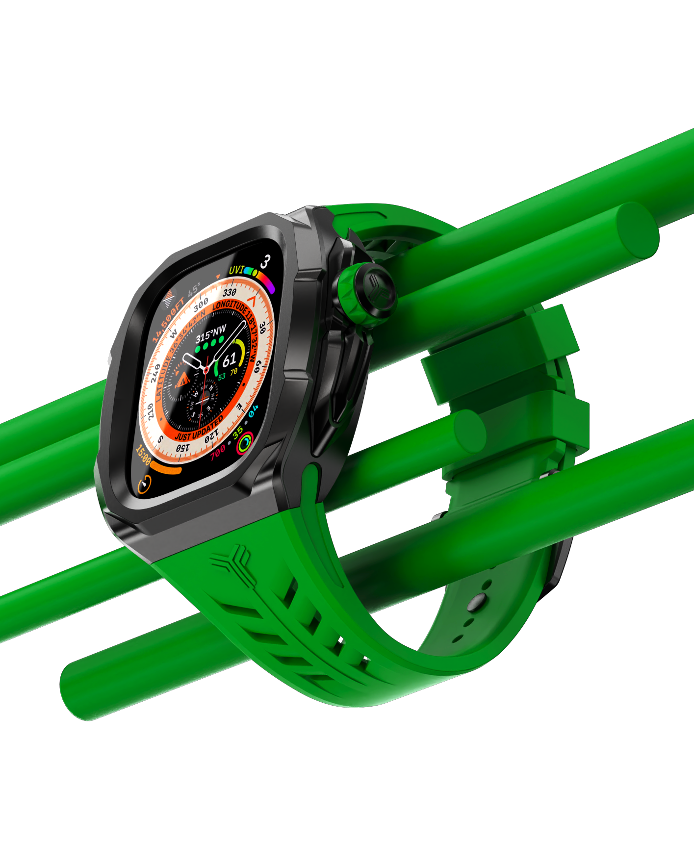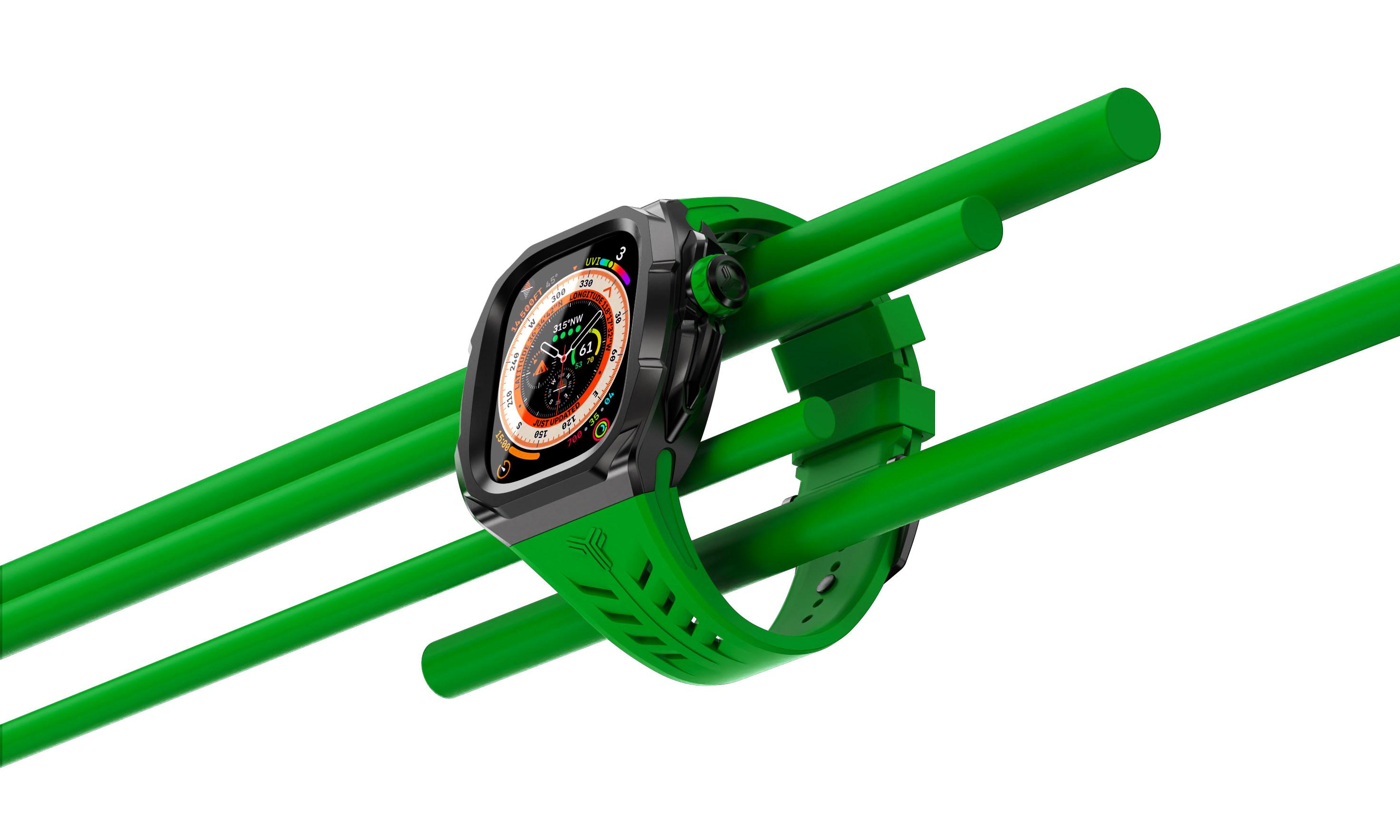 グリーンストラップとブラックベゼルにより、ダーク且つクリーンな印象を与える完璧なバランス。