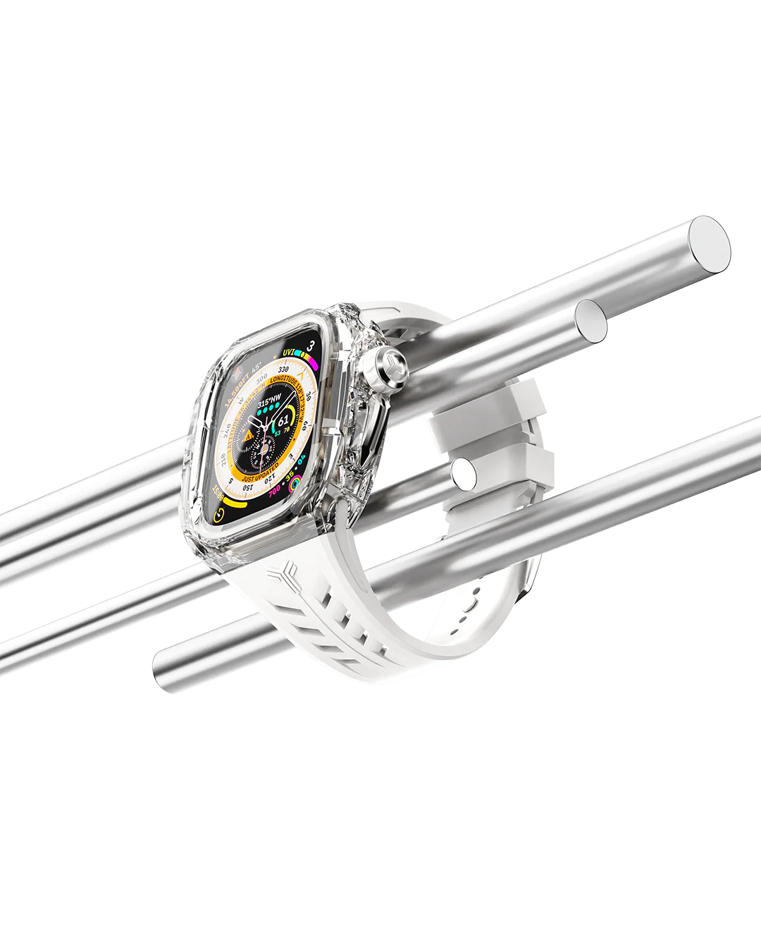 柔らかなホワイトストラップと透明なナイロンベゼルが絶妙なコントラストを生み出し、洗練されたスタイルを引き立てます。