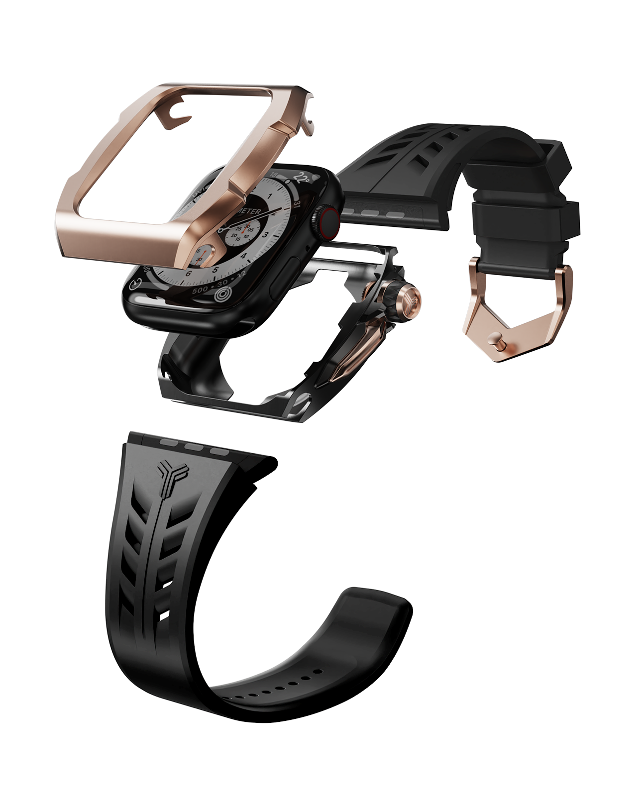 ケースにシームレスにフィットするよう設計された、シリコン製のラバーストラップ。Apple Watch本体の機能を最大限に利用したスピーディーで安全な装着方法で、スタイルに合わせて容易に付け替えることができます。