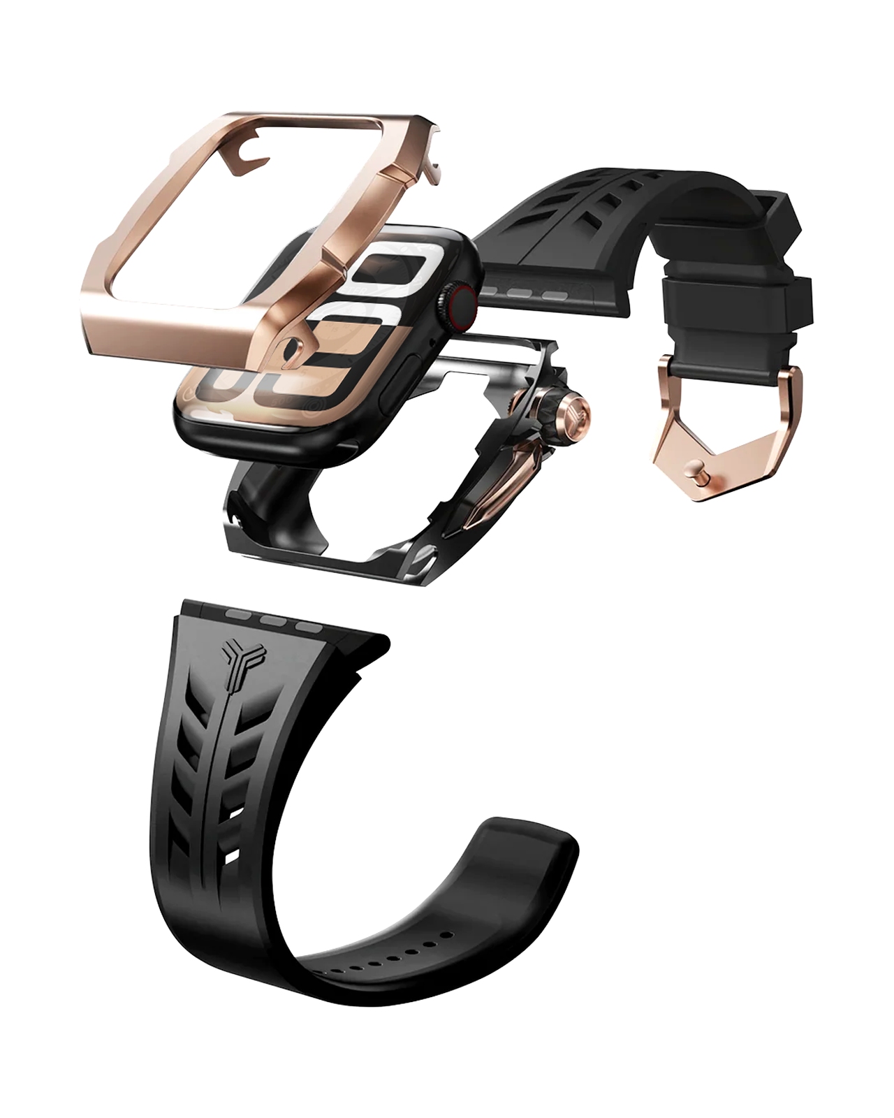ケースにシームレスにフィットするよう設計された、シリコン製のラバーストラップ。Apple Watch本体の機能を最大限に利用したスピーディーで安全な装着方法で、スタイルに合わせて容易に付け替えることができます。