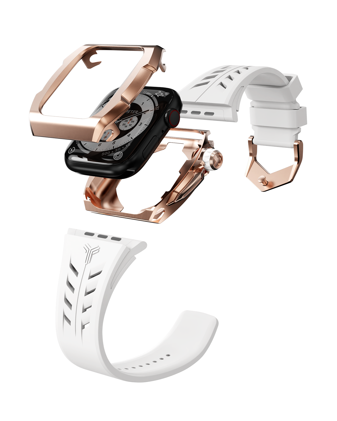 ケースにシームレスにフィットするよう設計された、シリコン製のラバーストラップ。Apple Watch本体の機能を最大限に利用したスピーディーで安全な装着方法で、スタイルに合わせて容易に付け替えることができます。